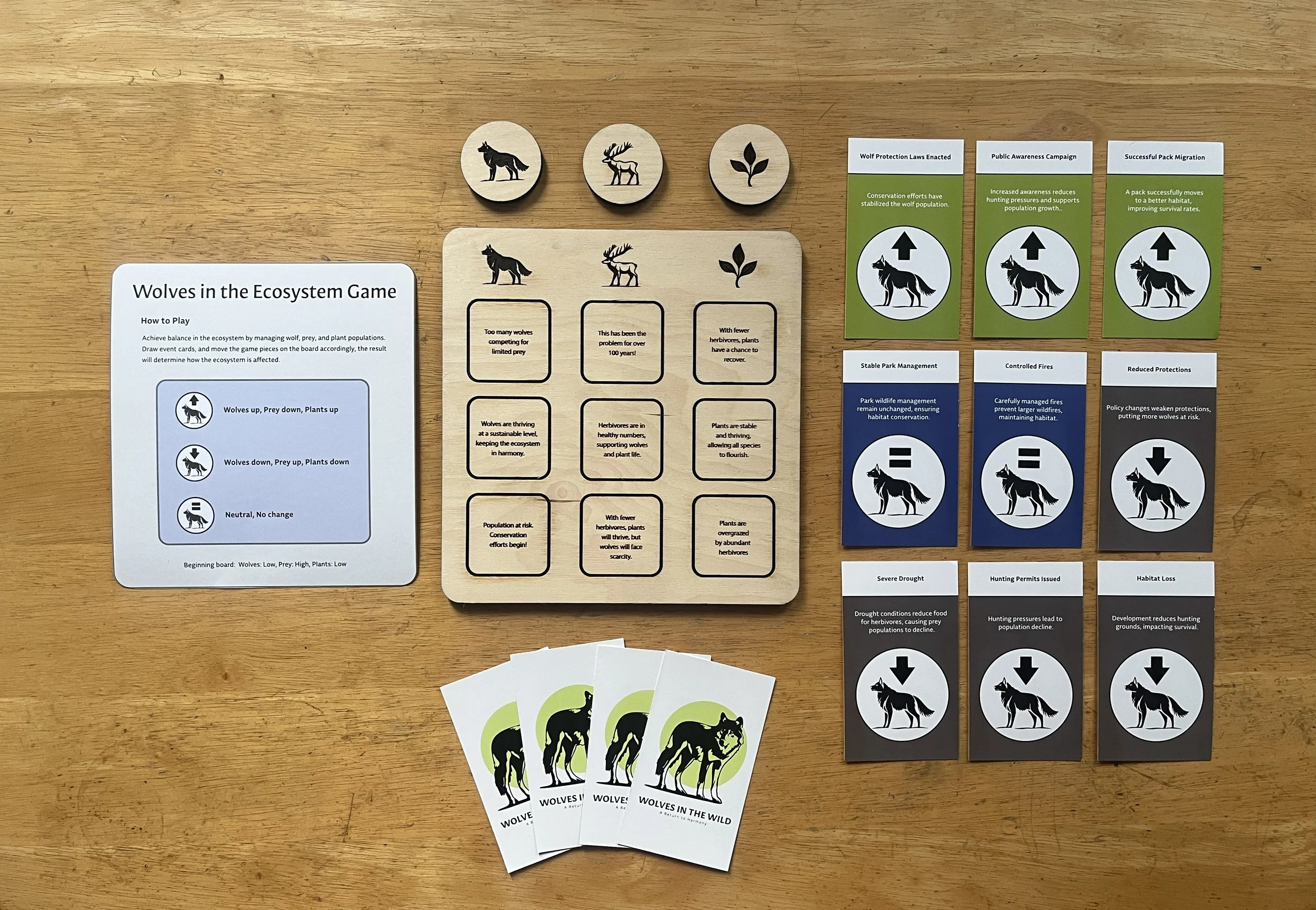Interactive Game: Developed to illustrate how wolf populations influence herbivore and plant populations, this engaging activity connects audiences to the ecological significance of apex predators.