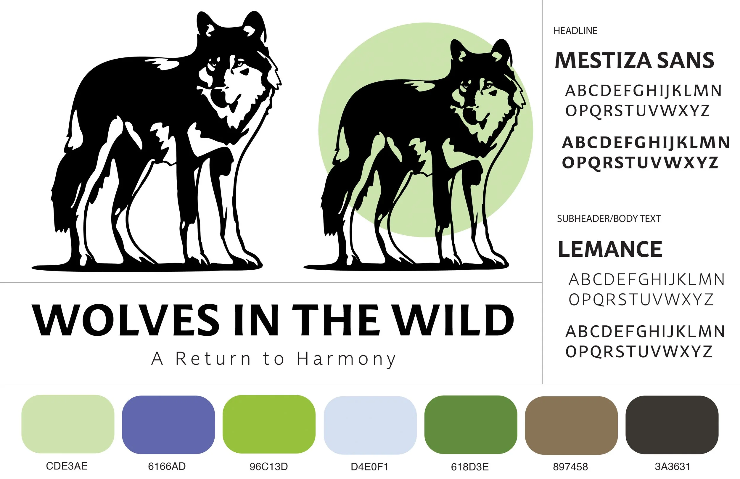 Design a museum exhibit that educates the public about the ecological importance of wolves and advocates for their reintroduction into the wild. The exhibit concept needed to be visually cohesive and effectively balance scientific information with engaging visuals to create awareness and inspire public advocacy.